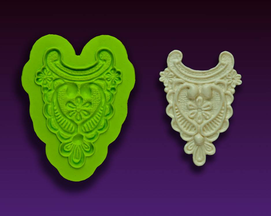 Peggy is a Silicone Lace Mold with a self trimming blade and an enhanced lace pattern that has lace swirls and flowers. Made with the highest quality, food grade silicone to produce an extremely durable silicone mold that is tear resistant and can withstand temperatures to 400° F.